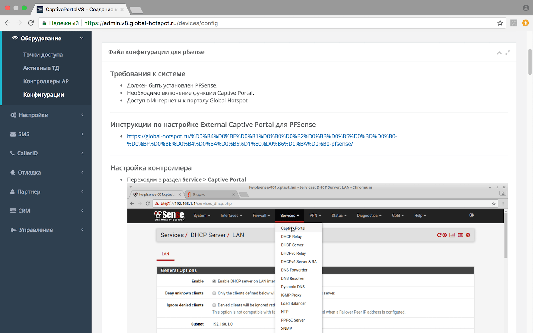 Вы здесь: Домашняя страница1 / hotspot-оборудование2 / Настройка Wi-Fi hotspot captive portal на pfSense3 / Настройка captive portal PFSense 1